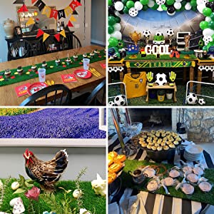 - Widely of Used: As a grass centerpiece for table on party. Creating a grass wall for home. Making a fairy garden or DIY fake grass crafts. Decorating area of patio, balcony, yard. Potty training for Dogs. Nesting Pads for Chicken. Our grass pads fit any area where you want, to fix, please use adhesive tape for splicing.